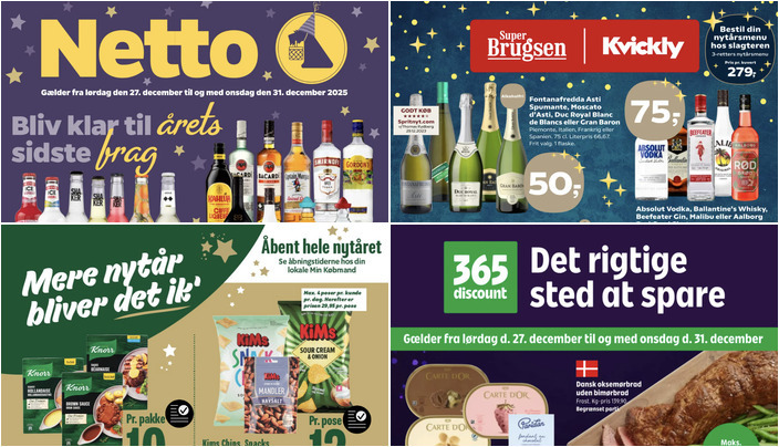Netto tilbyder Smirnoff Ice, Shaker eller Mokai til en pris på 5 kr. pr. flaske på 27,5 cl. Tilbuddet gælder fra lørdag den 27. december til onsdag den 31. december.